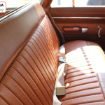 The customer’s VF wagon has its own original and immaculate door cards, but the seats need retrimming. The two-tone brown vinyls need to match well with the original door trim vinyls. So we sent samples from the unfaded parts of the seats to SMS Auto Fabrics (Oregon, USA) to match. The reproduction vinyl materials ended up matching awesomely with the wagon’s own door trims.