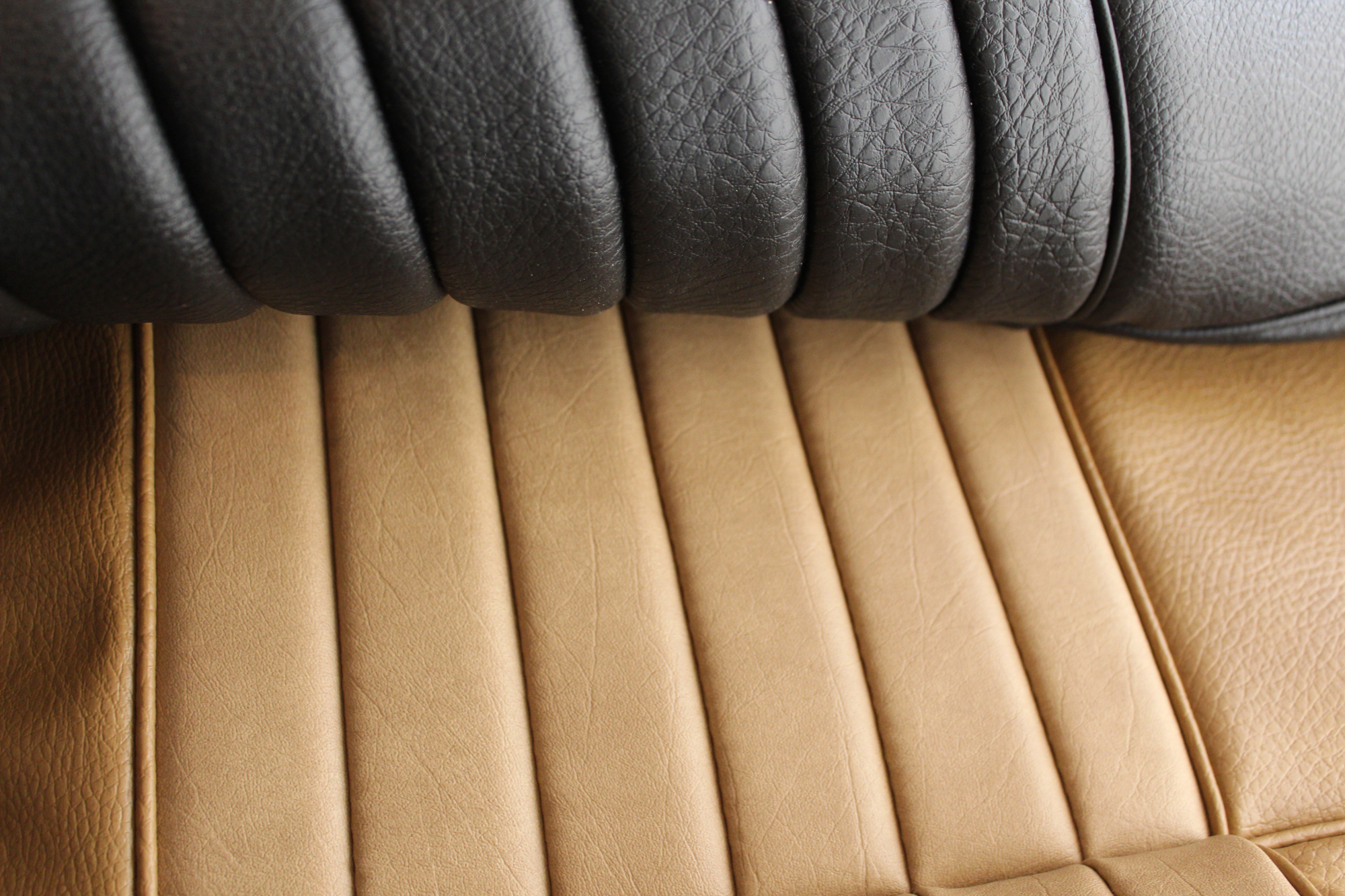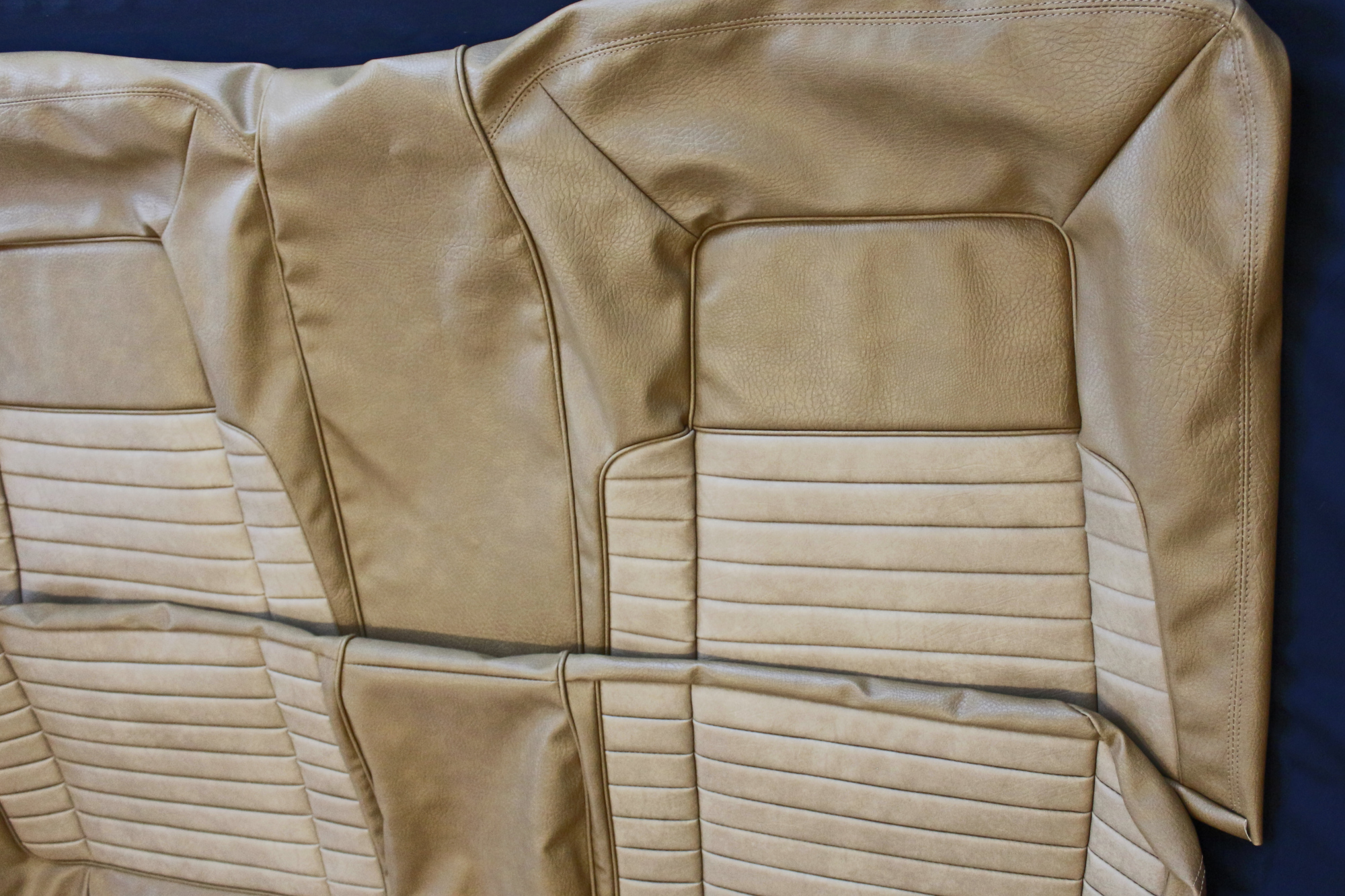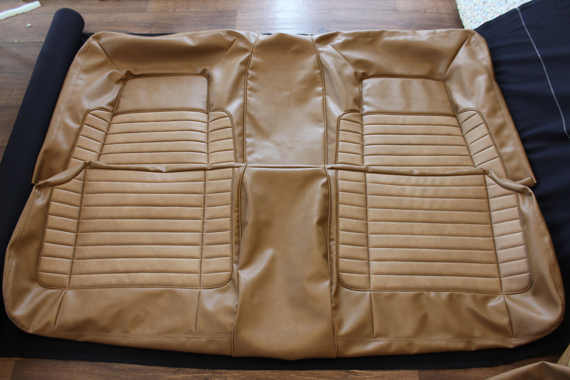 front & rear seat skins in black R/T or XL style vinyl, front & rear seat foam kit, extra vinyl for front seat backing boards and hand brake cover.