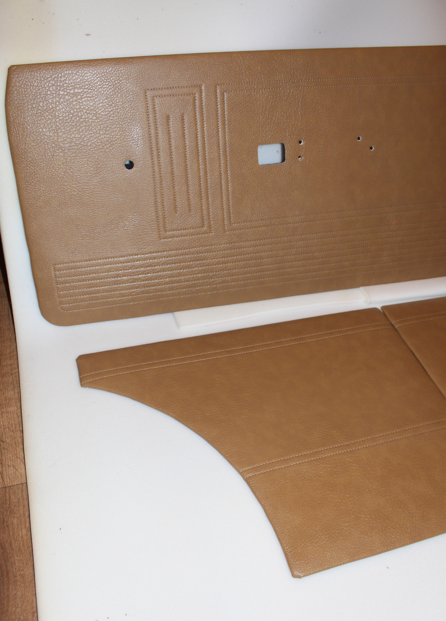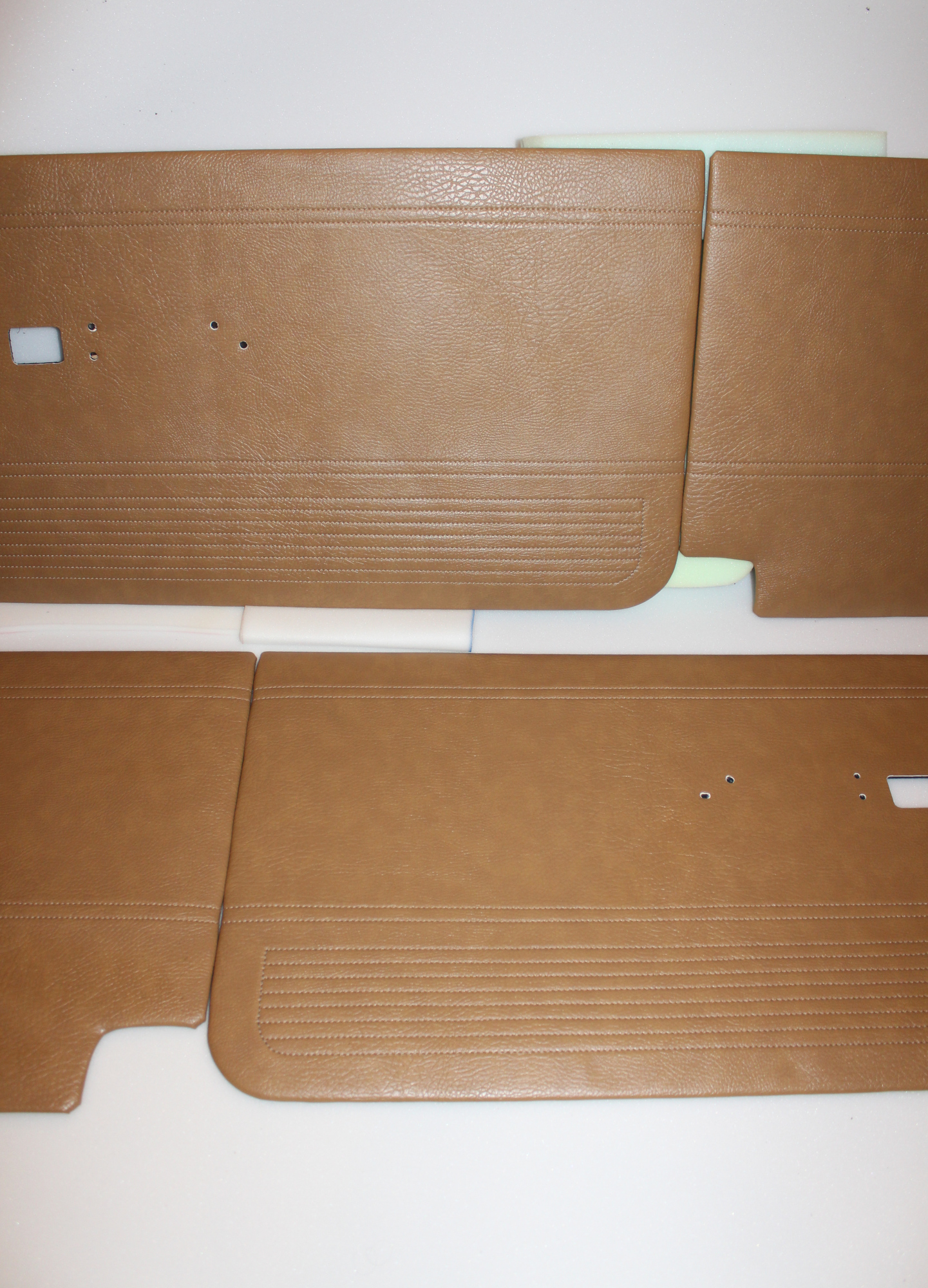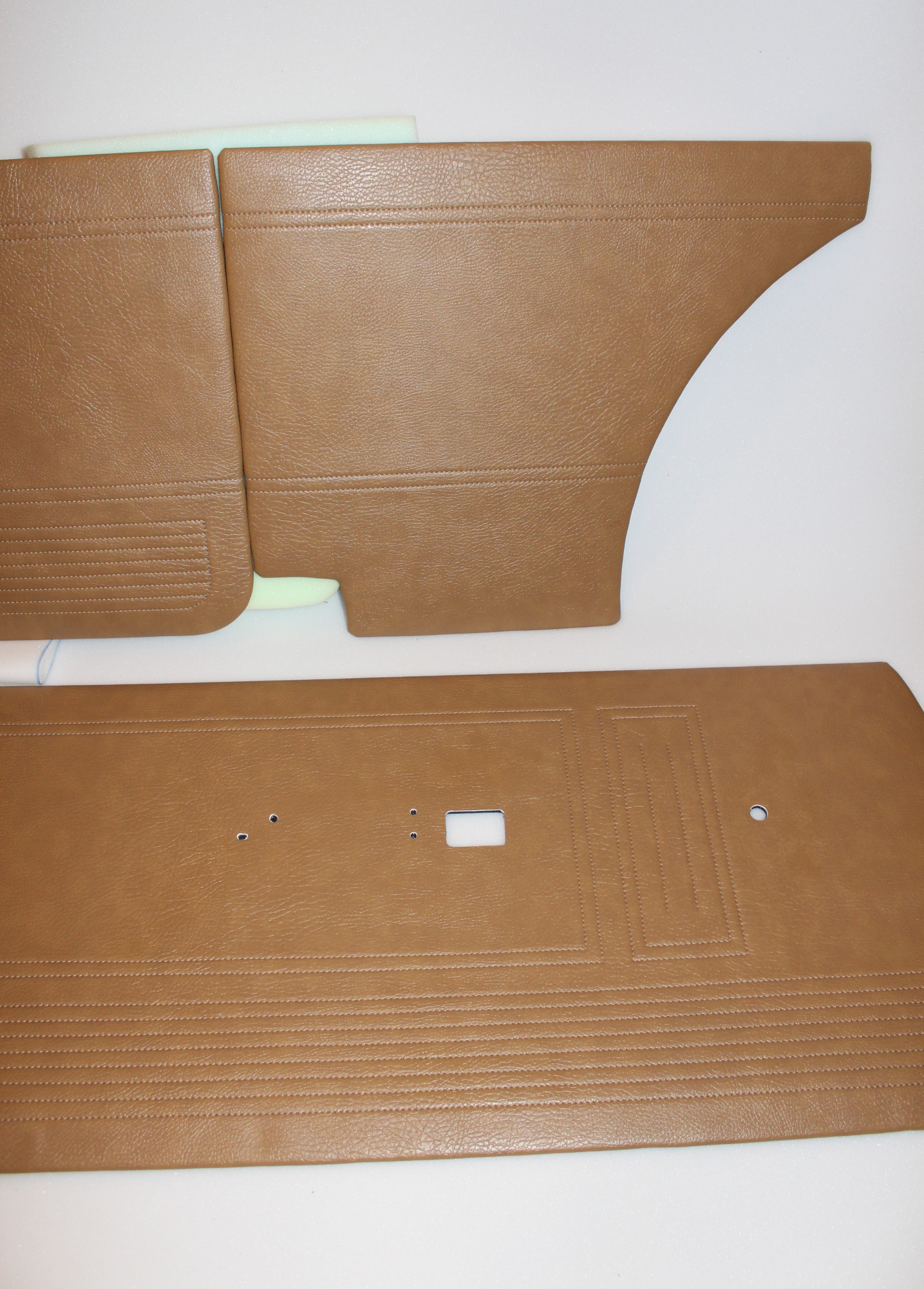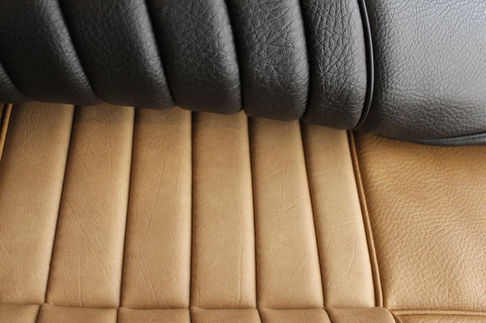 front & rear seat skins in black R/T or XL style vinyl, front & rear seat foam kit, extra vinyl for front seat backing boards and hand brake cover.